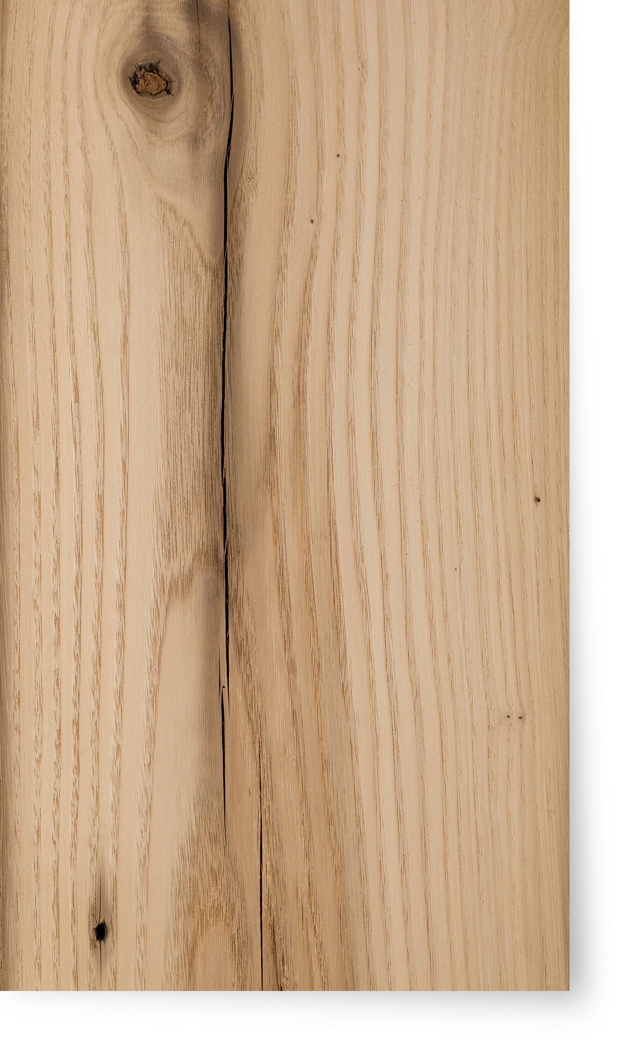 The American Chestnut was heavily affected by a tree disease that struck in 1904. Logically, most of our reclaimed Chestnut is carefully reclaimed from beams or sidings from farms and homes that were built before that year. This wood shows a very strong colour variation with abundant cracks, worm-, beetle- and nail holes.