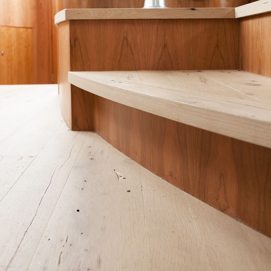 Floor:Antique American White Oak, finished in Faded Ultramatt Poly, with random narrow widths of 10–18 cm.