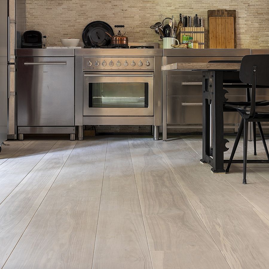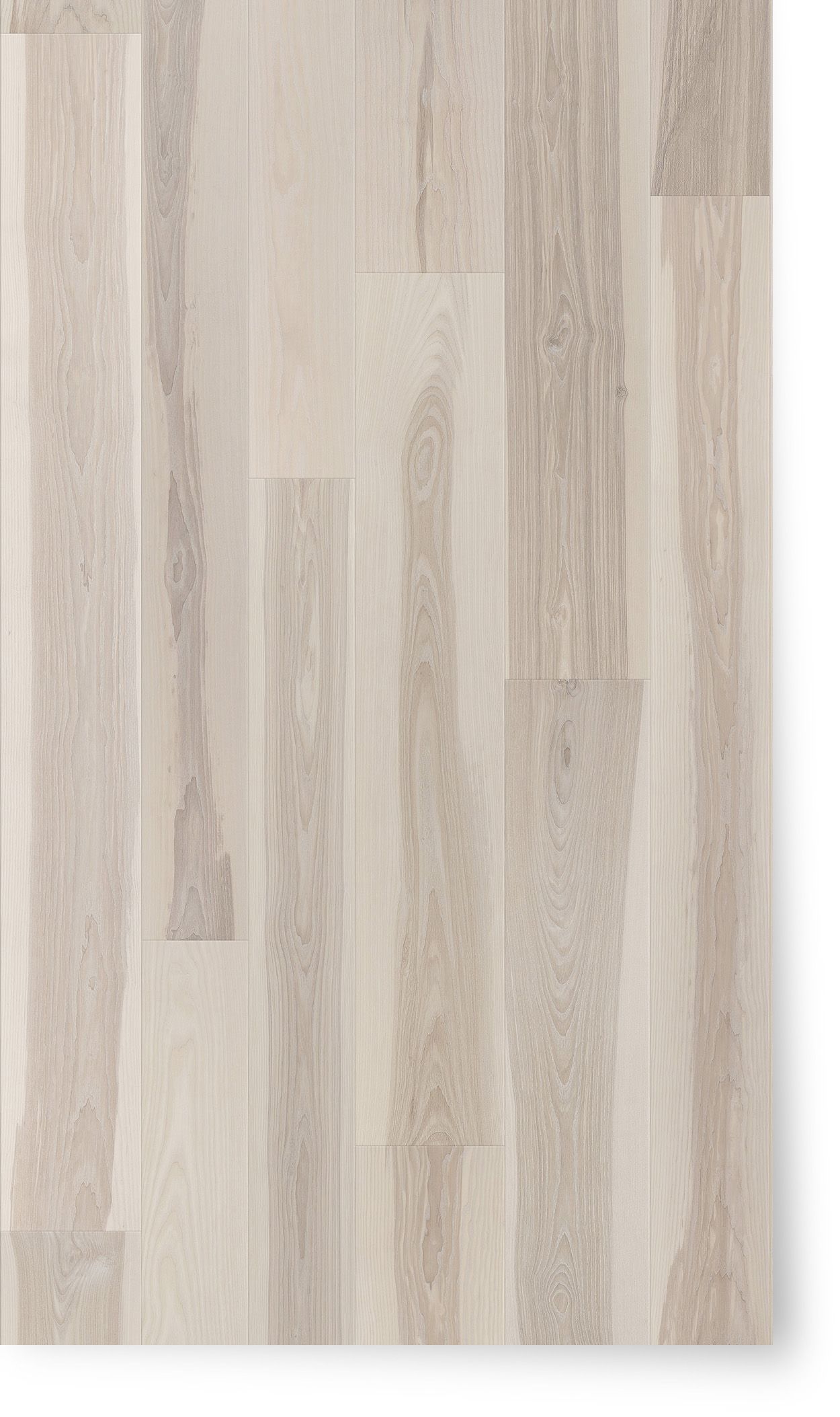 Pre-finished by hand, this remarkable selection of Ash has a playful bright Scandinavian touch. The wood is bleached treated with our lye against yellowing. the surface is treated with hardwax-oil and can be soaped and reoiled time after time to feed and protect the surface patina. This finish works best in randomly blended wider and longer boards for floors or walls.
